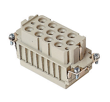 Brief description: female insert, 12 poles + PE, crimp connections, 40A 690V, (2 poles (10A max – 250V/4kV/3)), 8kV, 3, for female contacts 40A and 10A,